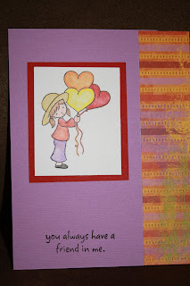 Once again, I've used the Miss Moxie collection. You'll notice over the next few days or couple of weeks that it will be quite popular. So, I used the prismacolor pencils to color the inside of the stamped image and then blended it with mineral oil and a blending stump. This is probably my favorite coloring technique. I used noir palette ink to stamp both the saying and image.